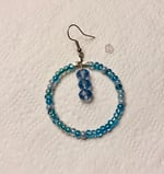 Sky Blue Hoop Earrings are made of a variety of Blue clear beads. The length is 2 1/2 inches long and they come with a Blue Satin Pouch.